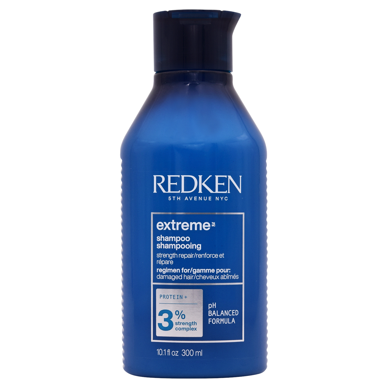 Strength repair. Regimen for damaged hair. Protein+ 3% strength complex. pH balanced formula. Suitable for color-treated hair. Cradle-to-Cradle Certified: Silver.