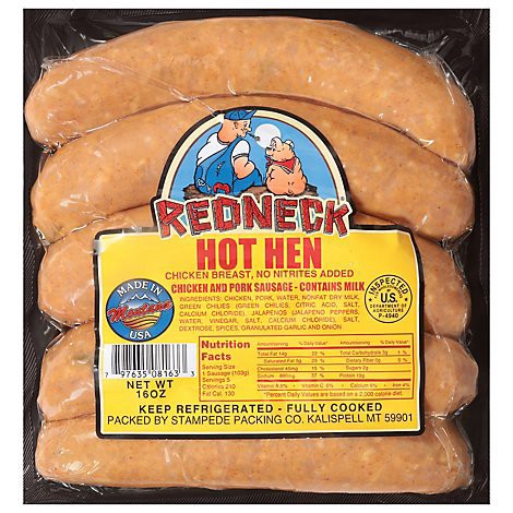 Redneck Hot Hen Sausage 16 Oz - 16 OZ