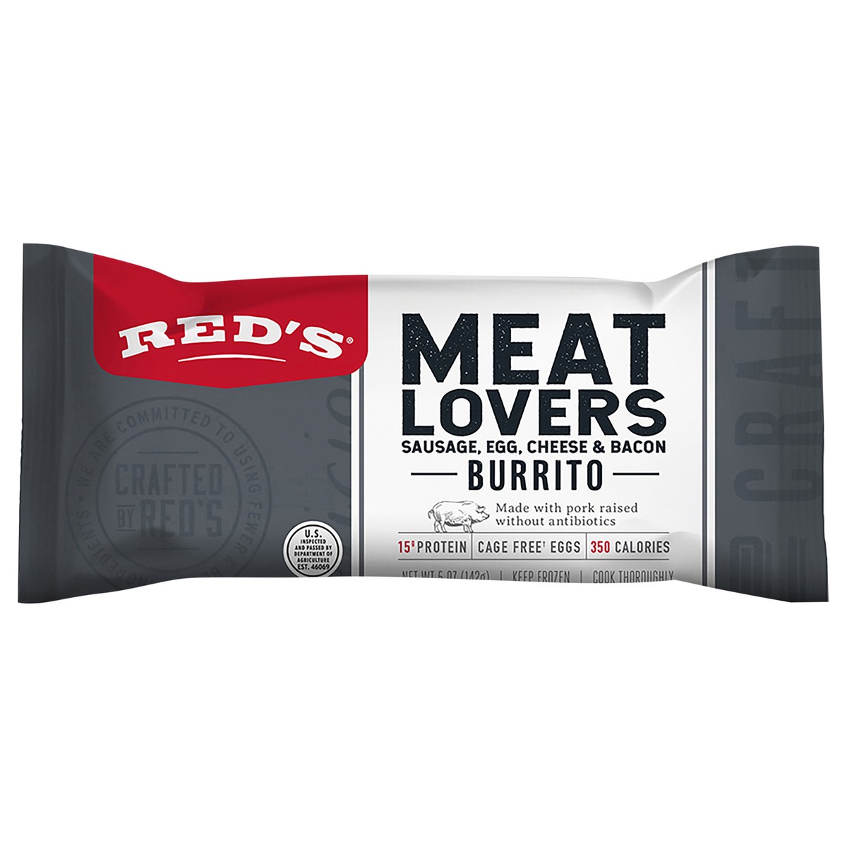 Enjoy the authentic taste of home cooking with Red's Meat Lovers Egg, Sausage and Bacon Breakfast Burritos. Cooked in small batches to ensure quality, these hand rolled burritos contain a blend of sau…