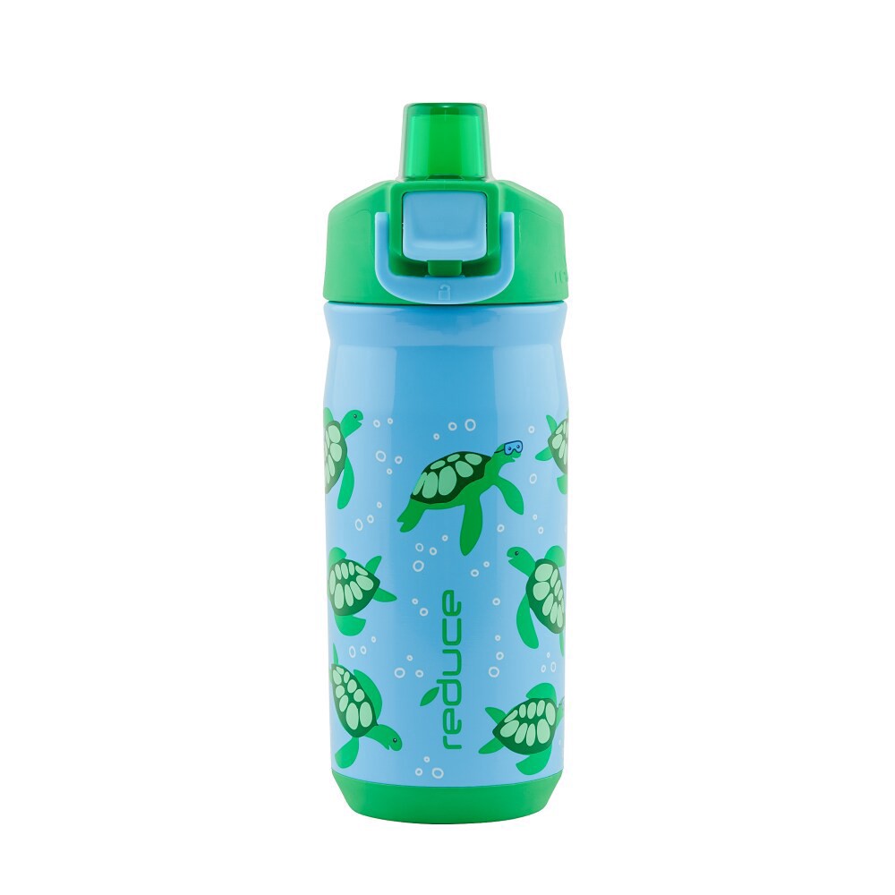 This kids water bottle is super-easy to use, even for preschoolers. The push-button lid is simple to open and close. When it is closed the leak-proof design seals it in completely. It holds 14 ounces …