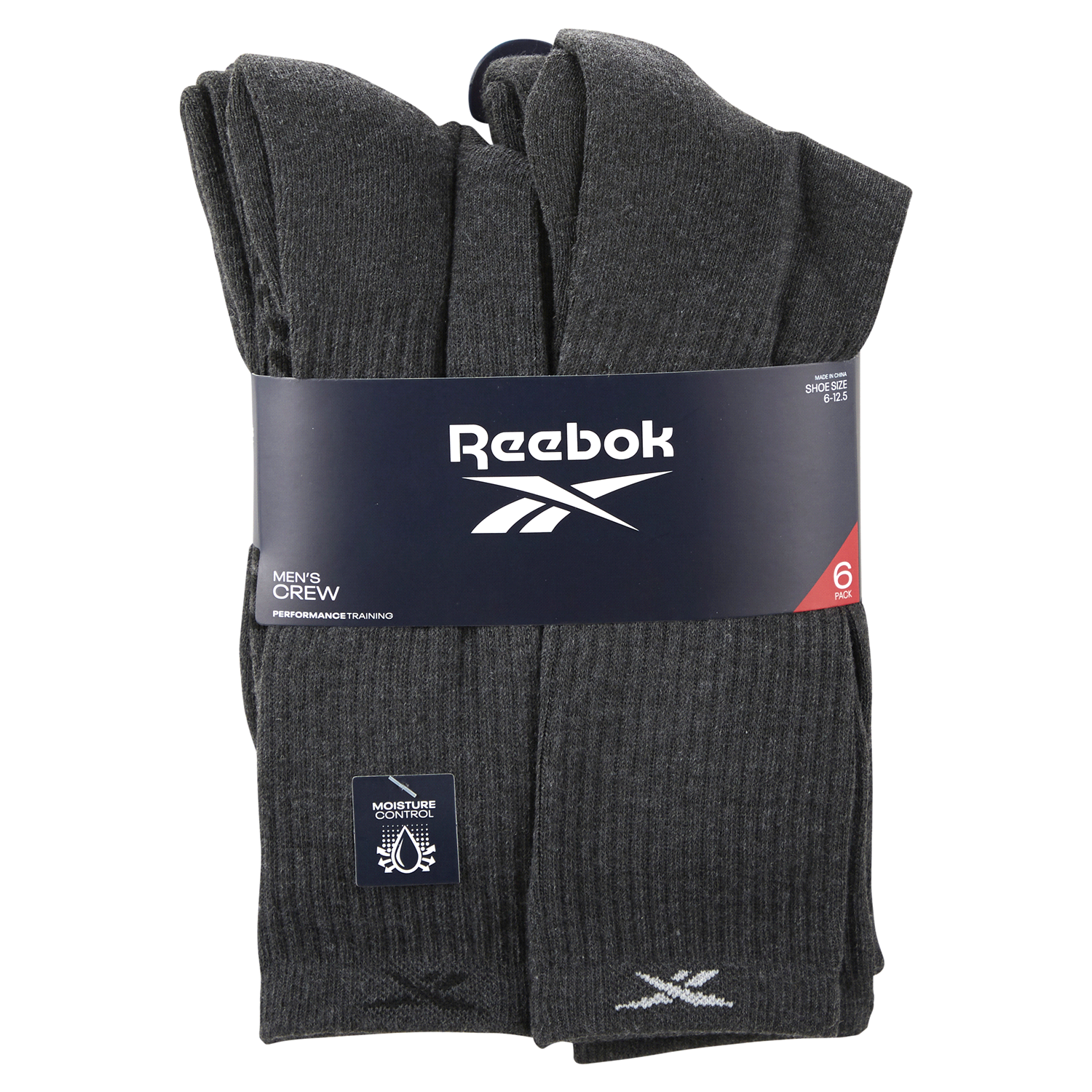 Reebok Men's Socks, 6 Pack, Grey, Size 10-13