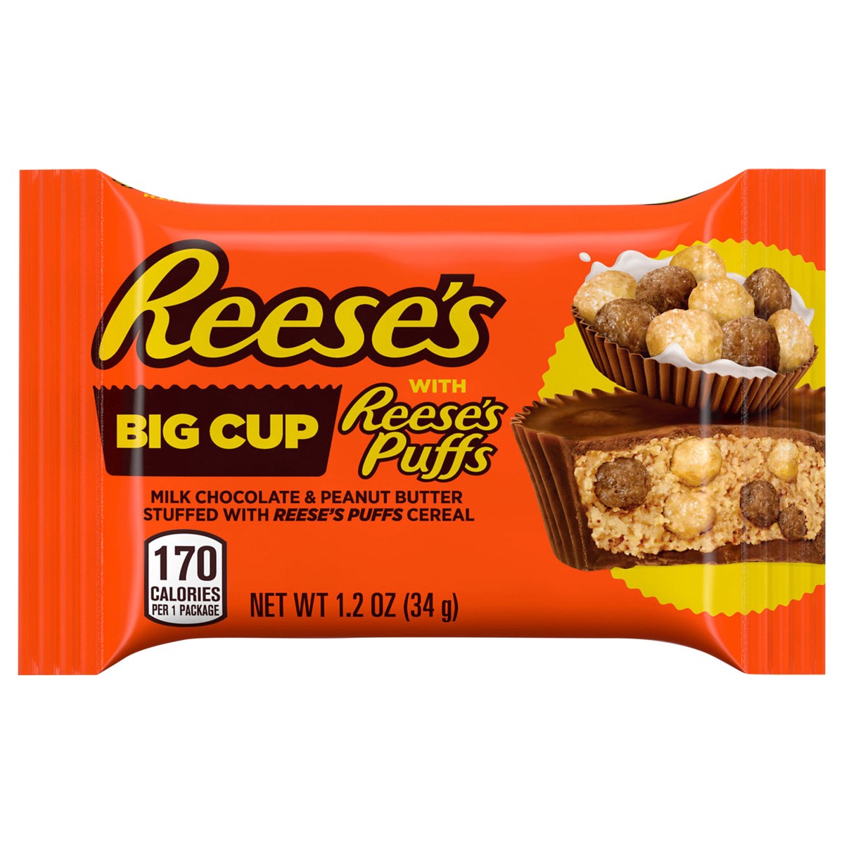Tasty REESE'S Puffs Cereal stuffed inside REESE'S peanut butter chocolate cups is the ultimate mashup of all things peanut butter and milk chocolate with an extra crunchy bite. REESE'S cereal tastes g…