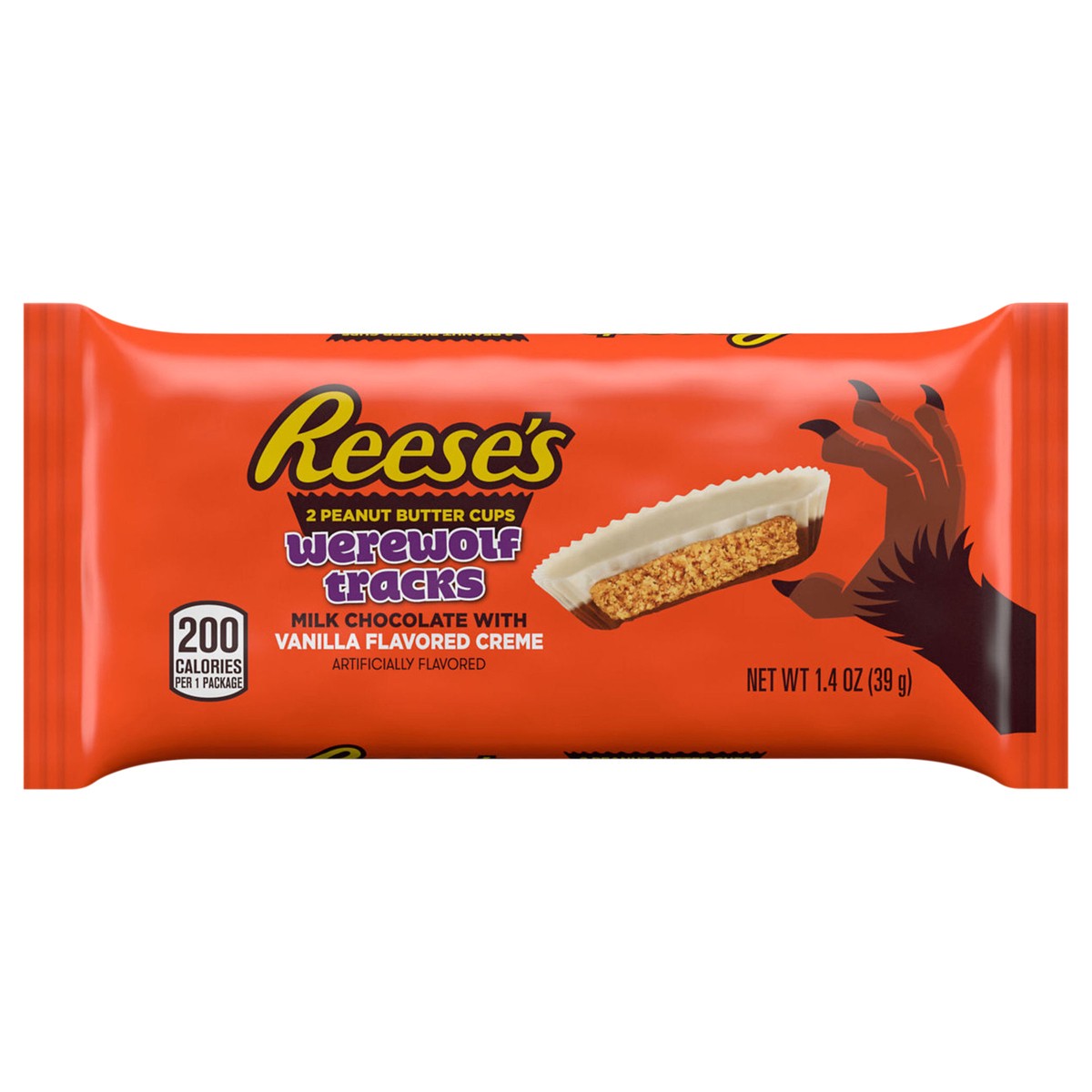 Surprise trick-or-treaters with a howling twist on their favorite candy with Reese's Werewolf Tracks milk chocolate with vanilla flavored creme peanut butter cups candy. When it comes to these Reese's…