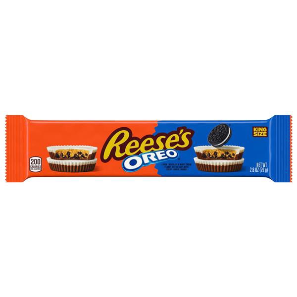 slide 1 of 1, REESE'S OREO Milk Chocolate and White Creme King Size Peanut Butter Cups, Candy Pack, 2.8 oz, 2.8 oz