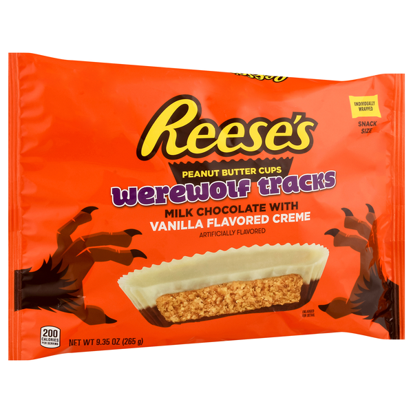 Surprise trick-or-treaters with a howling twist on their favorite candy with REESE'S Werewolf Tracks milk chocolate with vanilla flavored creme peanut butter cups candy. When it comes to these REESE'S…