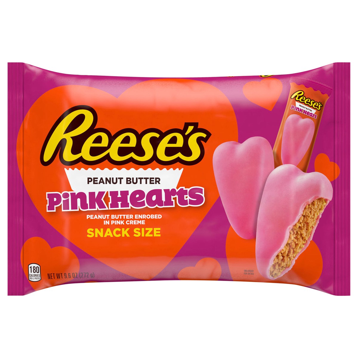 Heart-shaped REESE'S pink creme peanut butter snack-size candies make Valentine's Day gift-giving even more exciting. Individually wrapped inside an adorned bag, these peanut butter hearts are best pa…