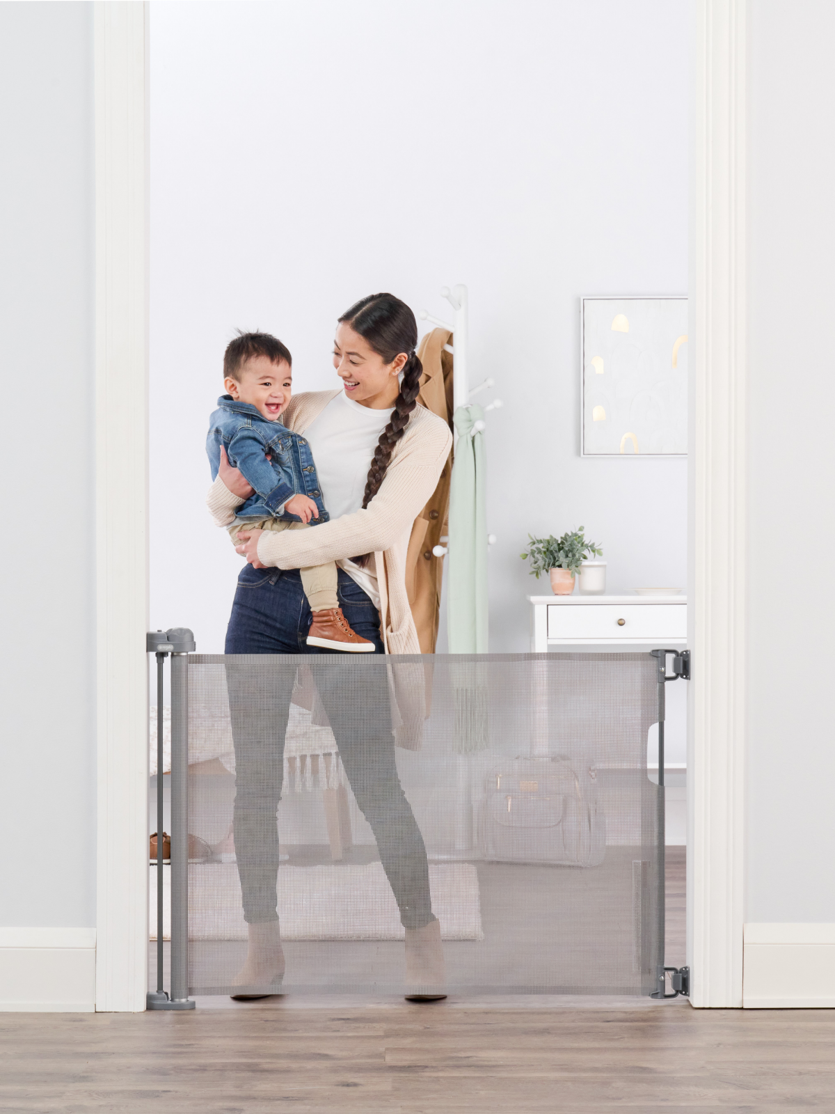 The Regalo Retractable Baby Gate is a simple and effective way to protect your baby and home. Made of high-quality mesh, the retractable baby gate slides to fit openings up to 50” and stands 30” tall.…