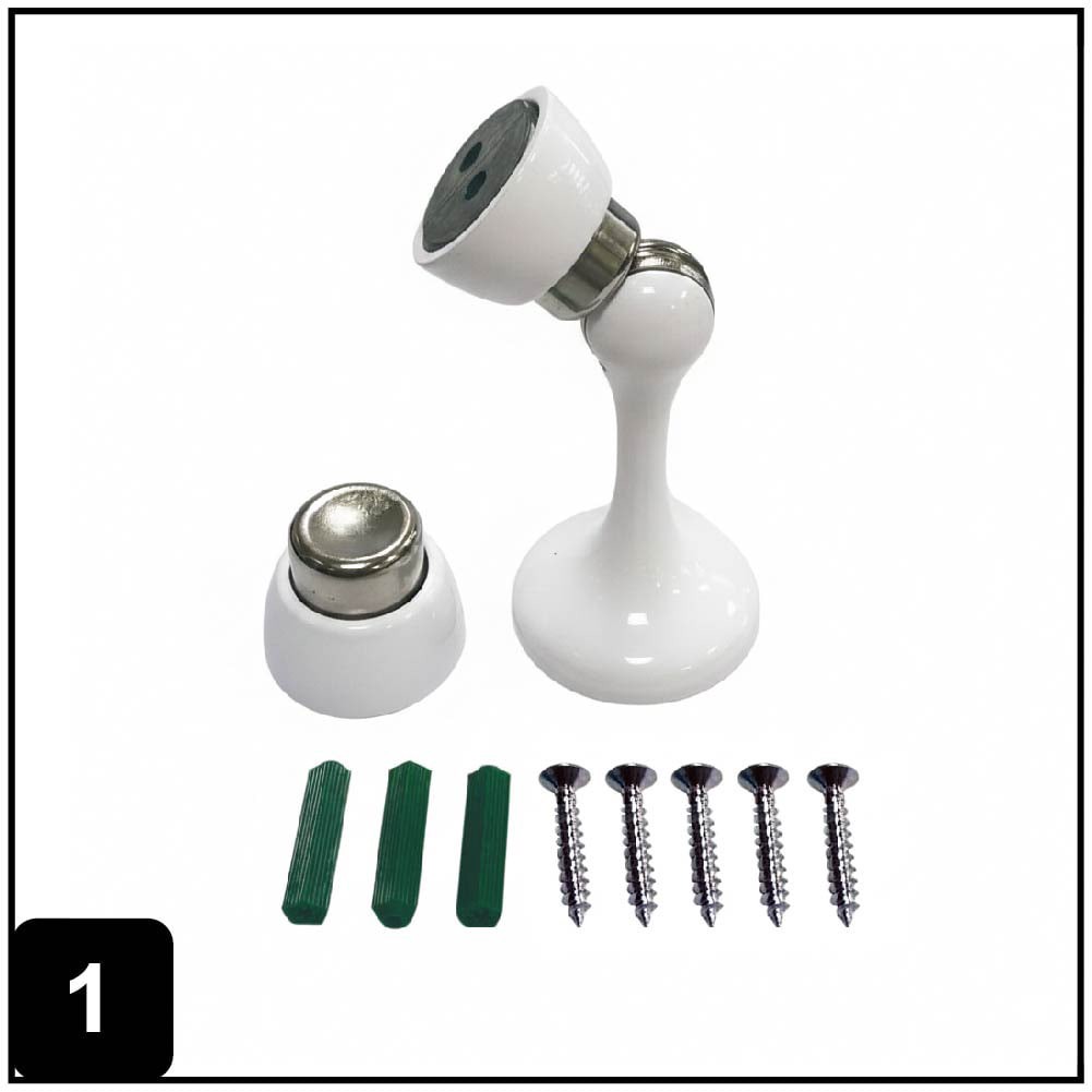 Magnetic door stop holds doors open and easily releases when door is pulled. This door stop offers a dual purpose to prevent wall damage and conveniently holds the door in an open position. Constructe…