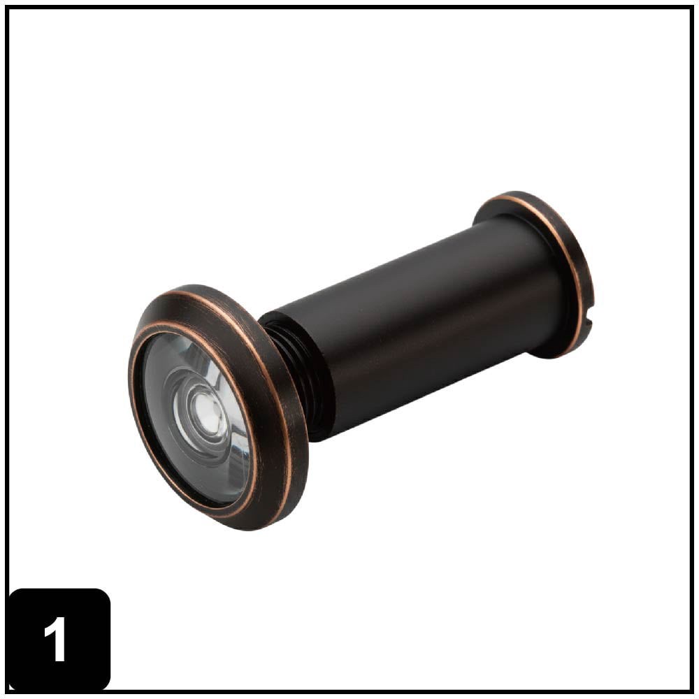 Bore hole diameter 9/16-in. Value item. Easy to install. Basic hardware. Oil rubbed bronze. Wide-angle optical lens provides enhanced entryway visibility. Durable, corrosion-resistant construction sui…