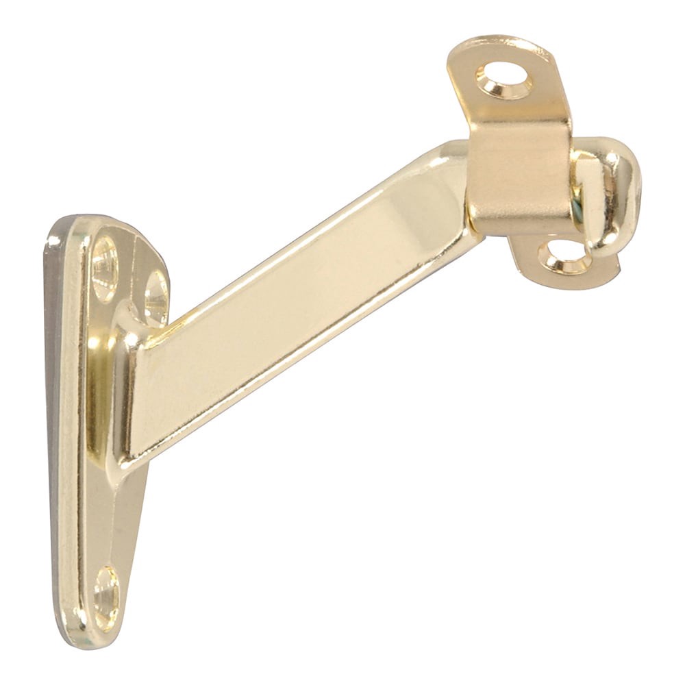 Secures wooded handrail to wall, stud or other structurally sound surface. Brass finish is extremely durable and maintains its appearance over time. Bracket and strap are designed to adjust to any sta…