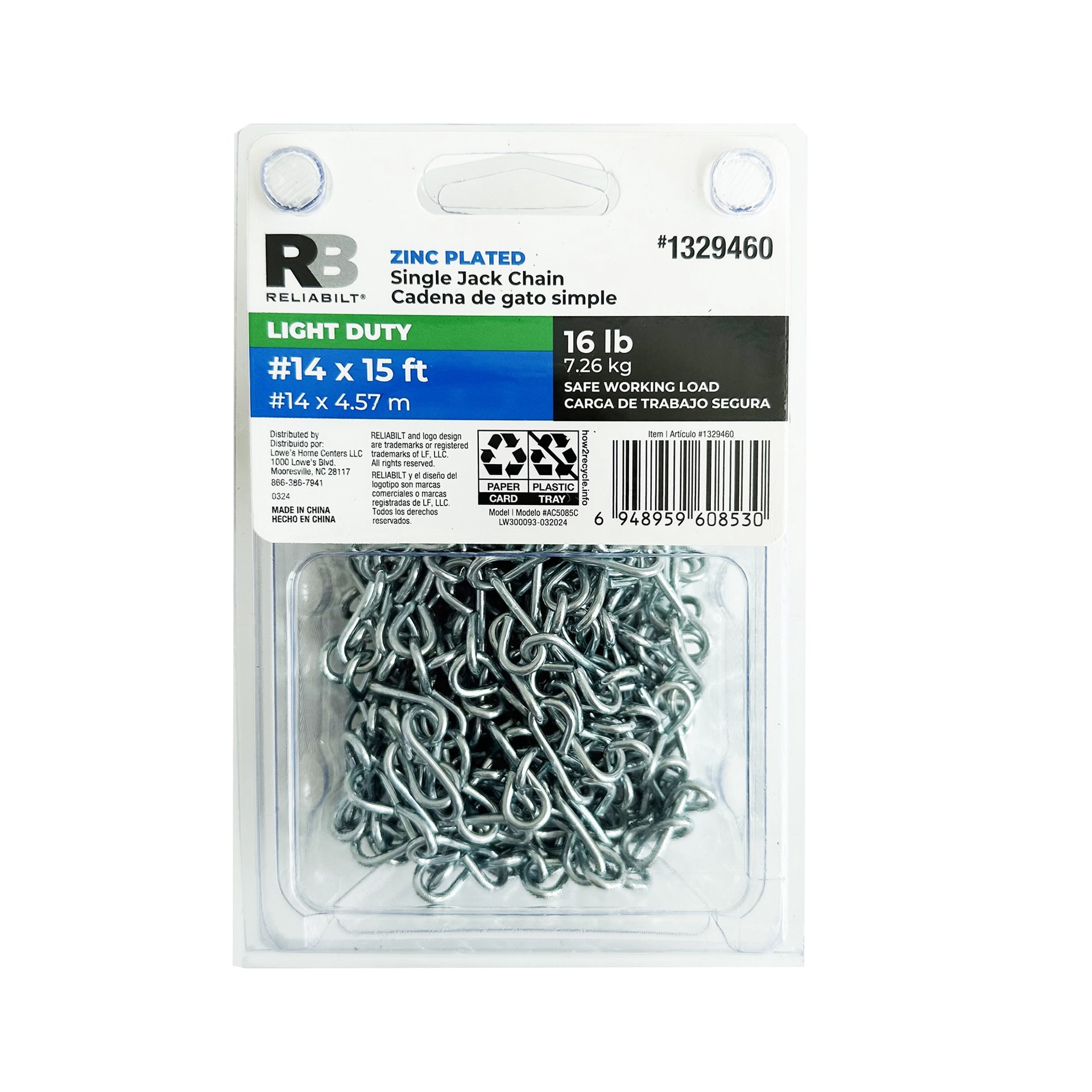 RELIABILT 15.0-ft x #14 Weldless Zinc plated Steel Chain (By-the-Roll)