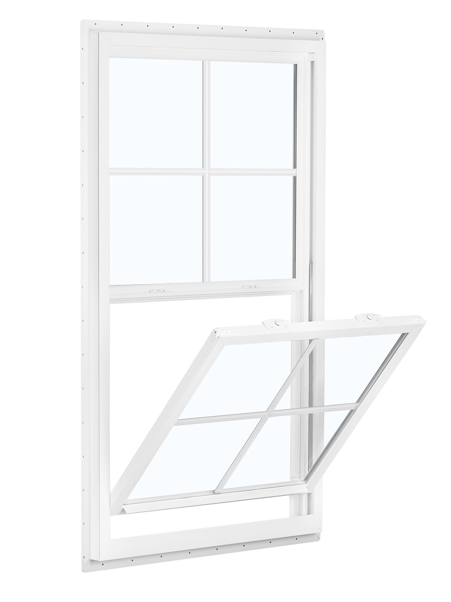 RELIABILT 150 Series White Exterior Vinyl New Construction Single Hung Window Low-E Double Pane Glass with Grids, (Half Screen Included)