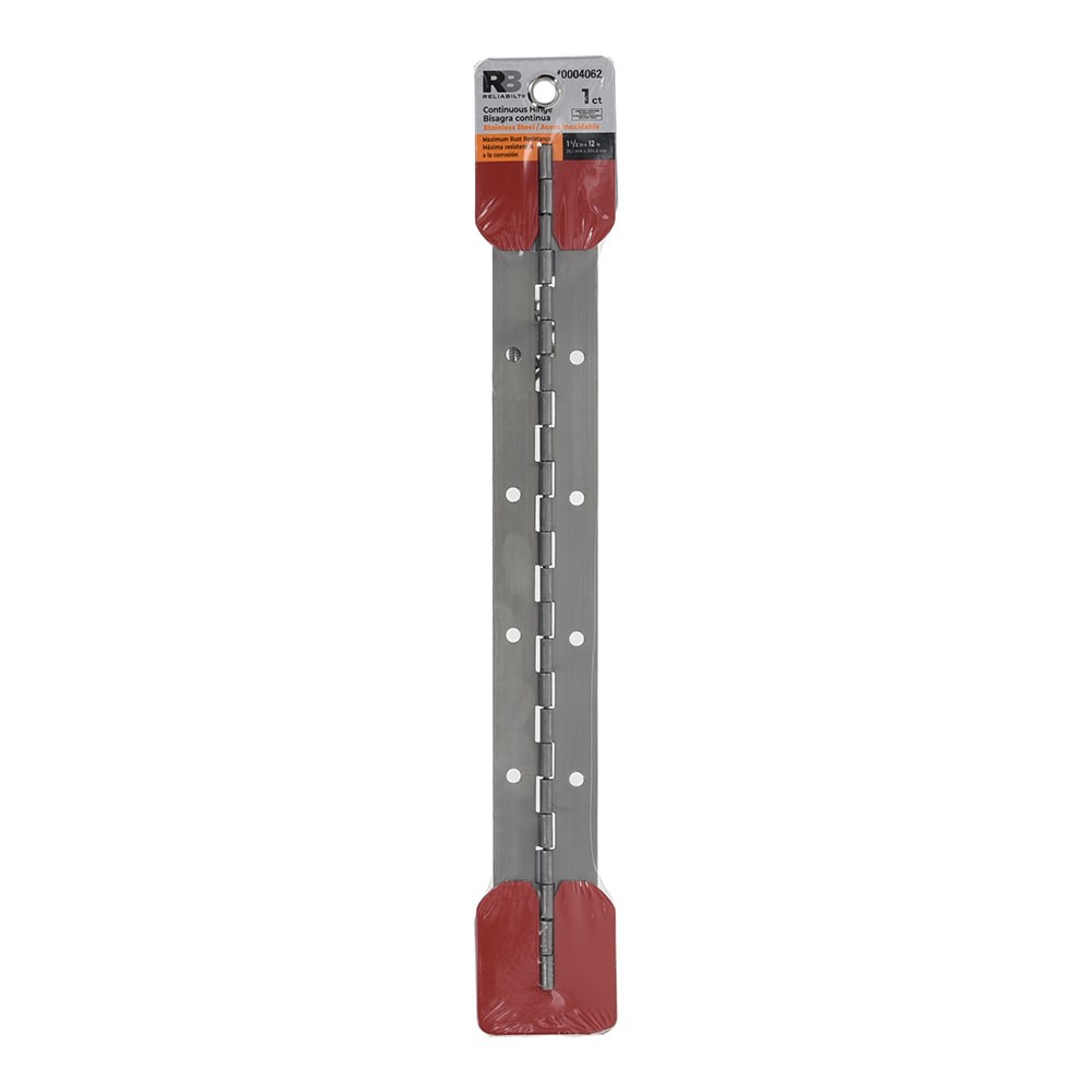1-1/2-in wide x 12-in long. RELIABILT continuous hinges are designed for chests, cabinets, folding tables, toy chests, etc. Stainless steel finish provides superior rust and corrosion protection. Scre…