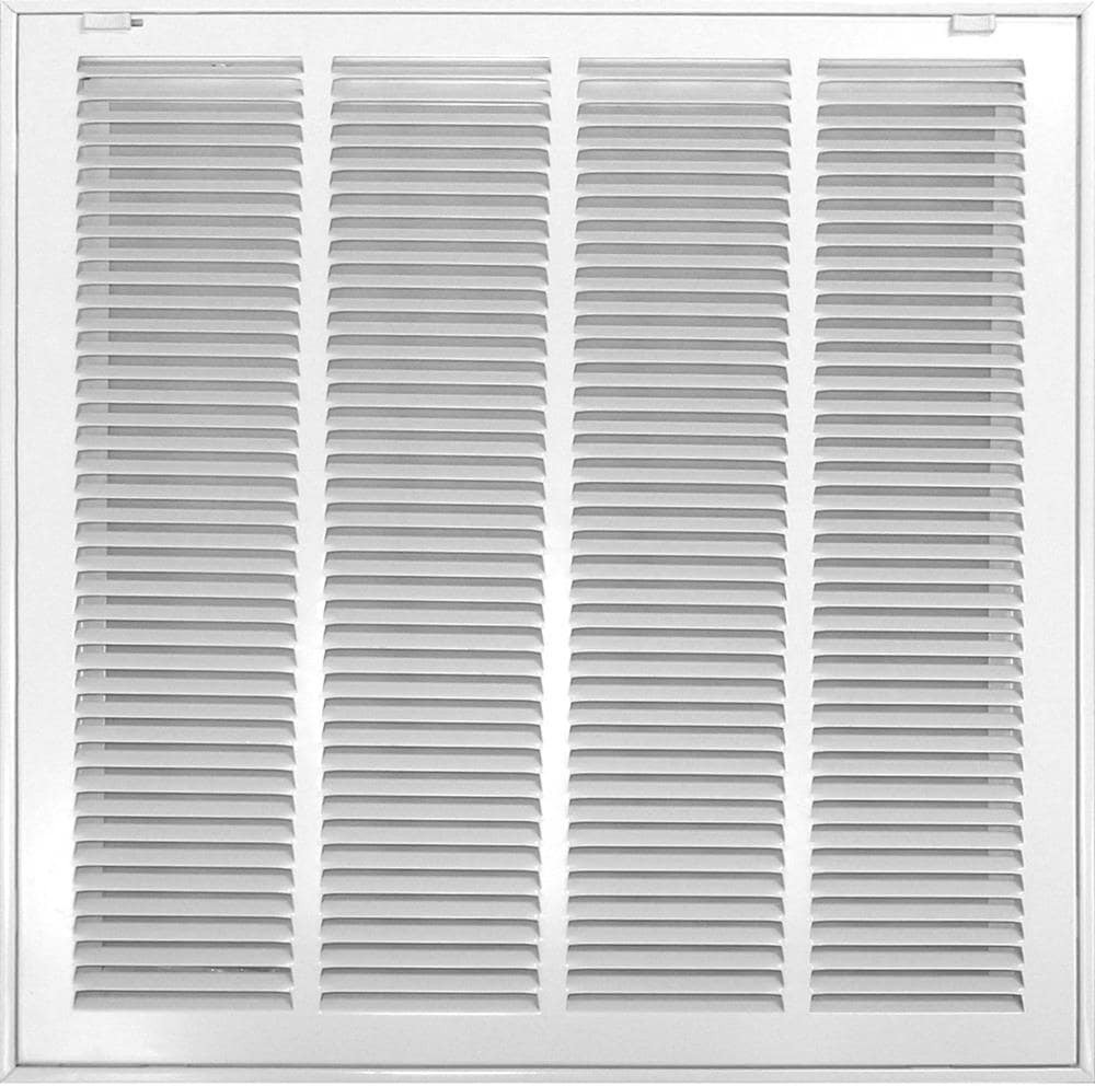 Steel construction. Durable white finish. For sidewall or ceiling application. 1/2-In spaced fins. Accepts nominal 1-in thick filters (not included). Removable hinged face for easy installation and cl…