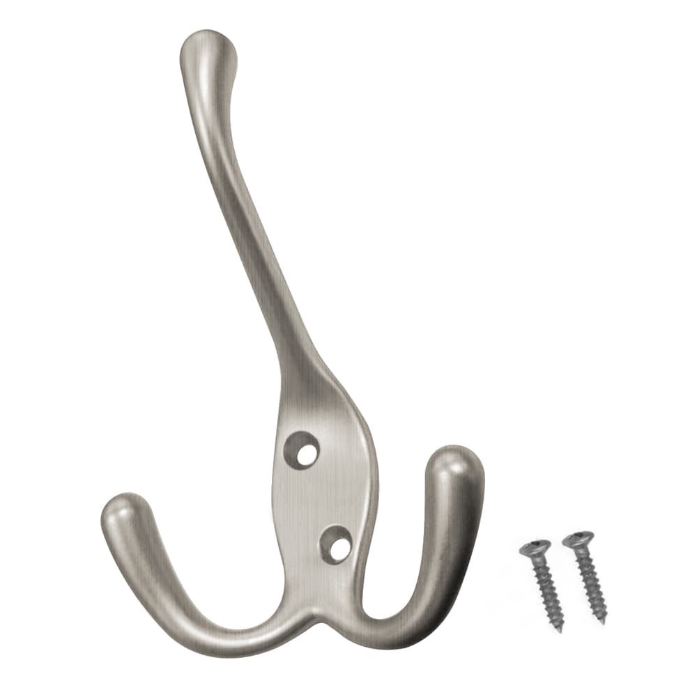 RELIABILT triple robe hook in satin nickel finish is ideal for bathrooms, closets, entryways or any other living area that needs additional storage options. Perfect for storing robes, towels or clothi…