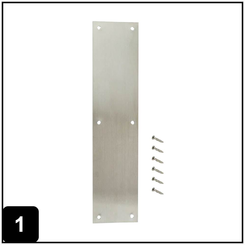 This 3-1/2-in x 15-in push plate protects and covers imperfections on door surfaces in high traffic spaces. Made of stainless steel for superior rust-resistance against the outside climate conditions.…