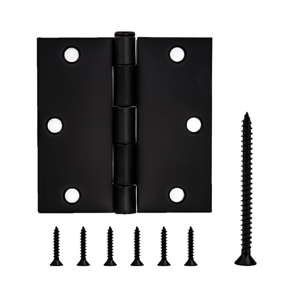 Matte Black interior door hinge. 3-1/2-in with square corner. Removable pin, full mortise. Screws included. Beautiful finish to coordinate with your existing door hardware. Made in China.