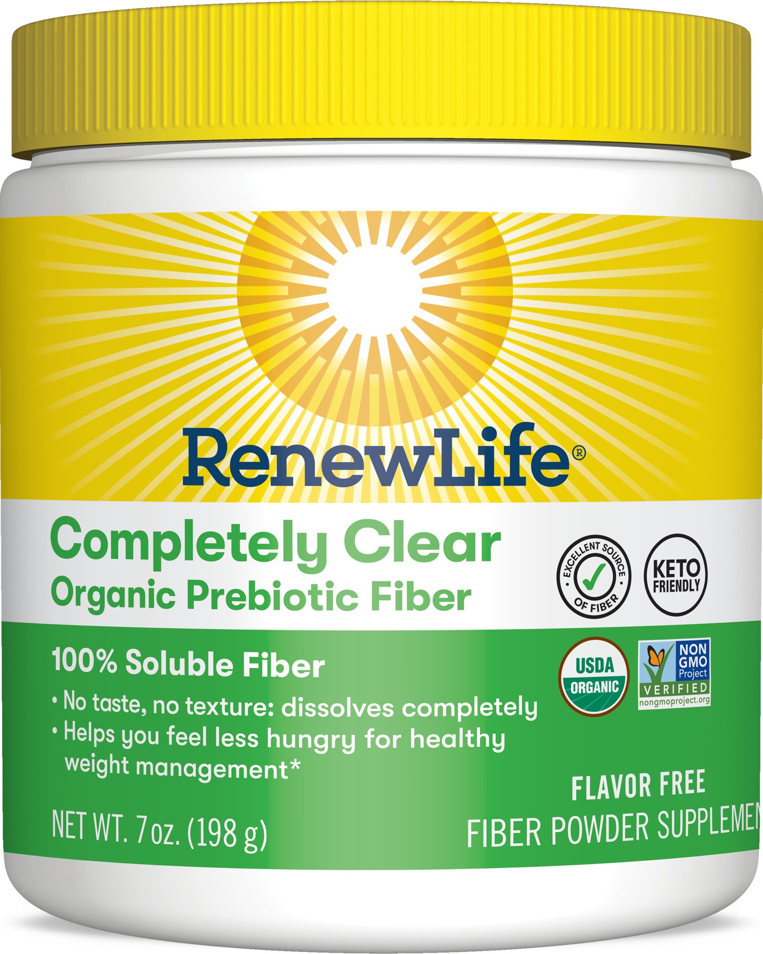 Renew Life Completely Clear Organic Fiber is 100% soluble fiber with no taste and no texture. It helps you feel less hungry for healthy weight management.* The flavor-free powder formula dissolves com…