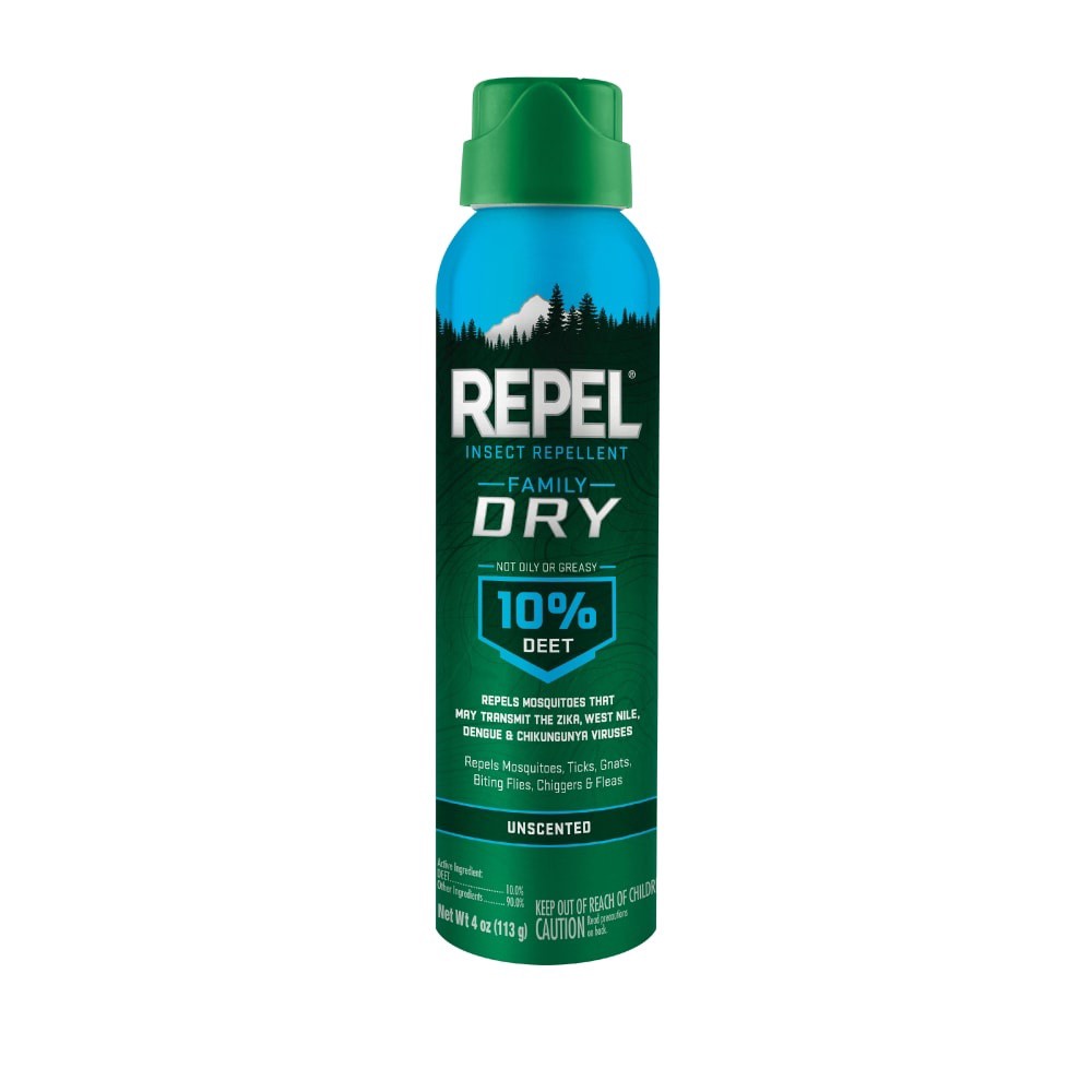 Repel Dry Aerosol Insect Repellent is an unscented, water-based, cornstarch formula that leaves a light, clean feel on the skin. Non-oily and non-greasy formula leaves skin feeling dry.