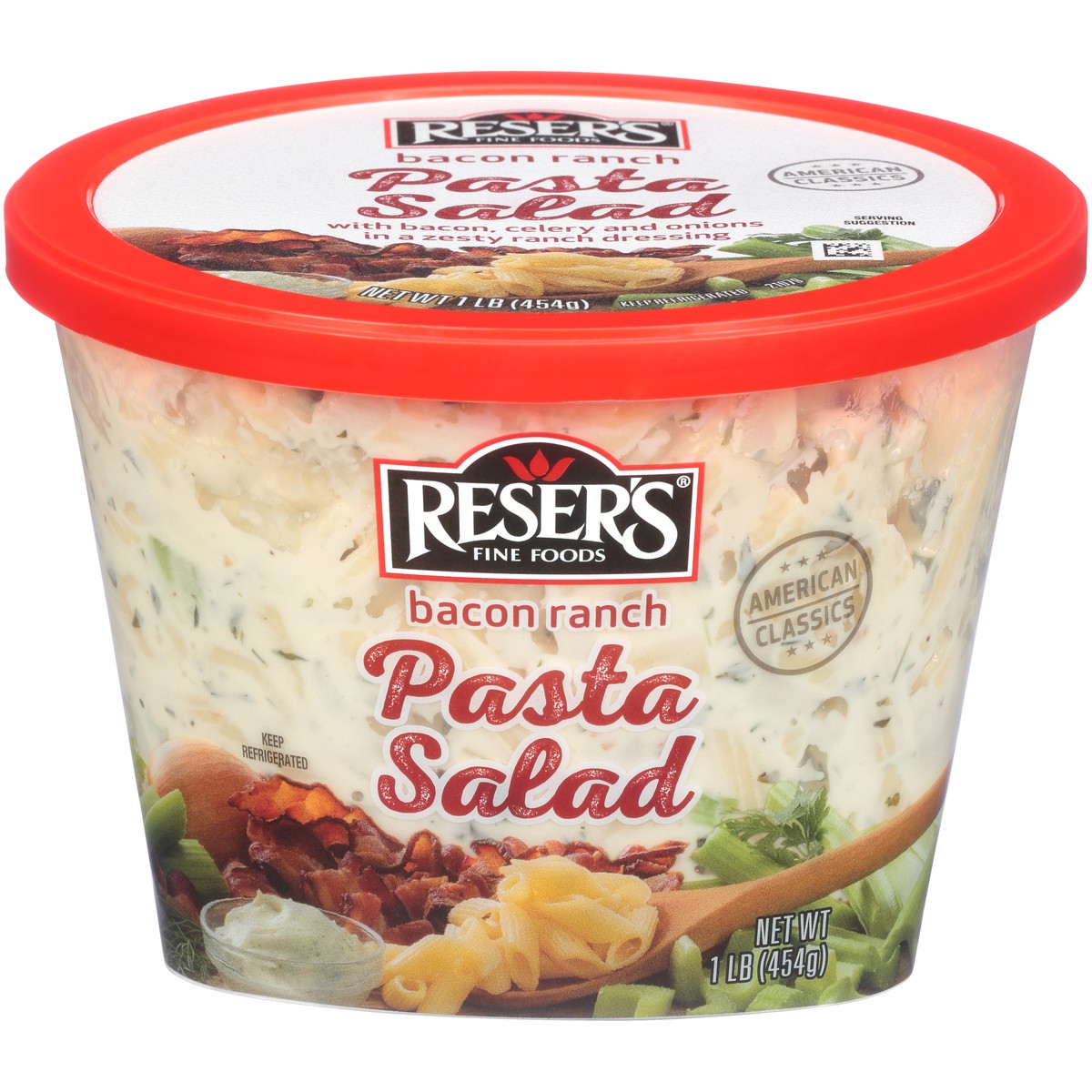 Everything's better with bacon. Reser's Bacon Ranch pasta salad is studded with bacon and packed with flavor. It features mini penne noodles cooked to perfection, smoky bacon, crunchy celery and onion…