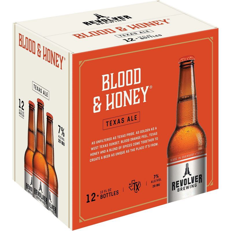 - 12 pack of 12-oz beer bottles of Revolver Brewing Blood & Honey Ale Craft Beer