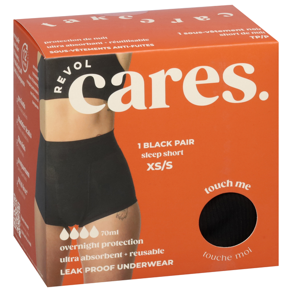 slide 1 of 1, Revol Cares Sleep Short, Black, Xsm/Sm, 1 ct
