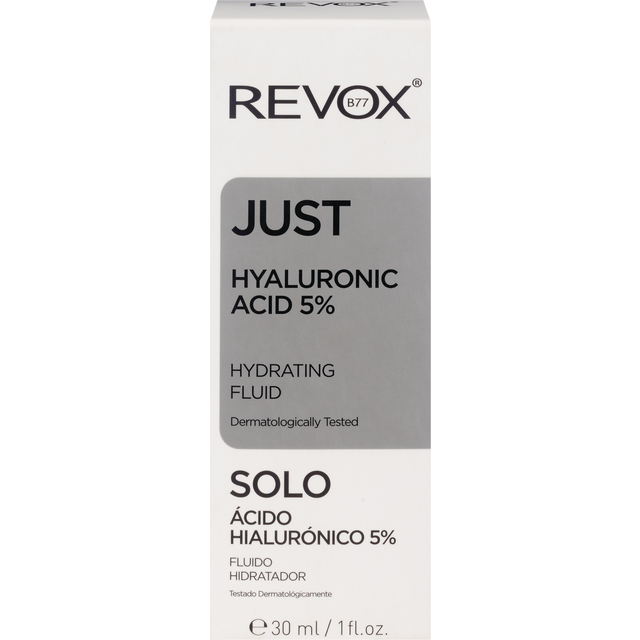 REVOX B77 JUST HYALURONIC ACID 5% is a hydrating fluid for face and neck. Hyaluronic Acid (HA) is a substance found naturally in our skin. It works by preventing loss of moisture and retaining it in t…