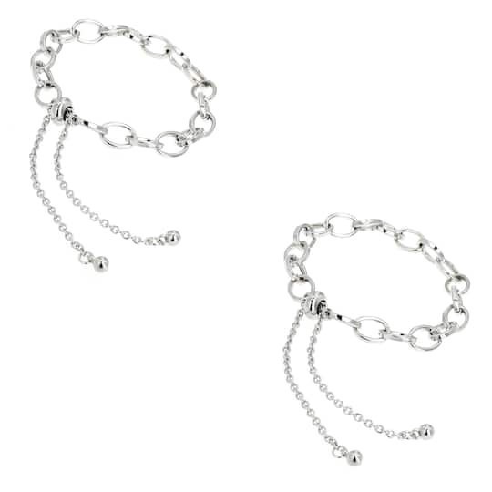Rhodium Cable Slider Charm Bracelets, 2ct. By Bead Landing