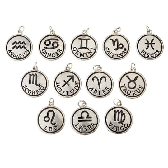 Purchase the Rhodium-Colored Zodiac Charm Set by Bead Landing at Michaels. Decorate bracelets, necklaces and other such jewelry accessories with these zodiac charms. Each charm has a zodiac sign inscr…