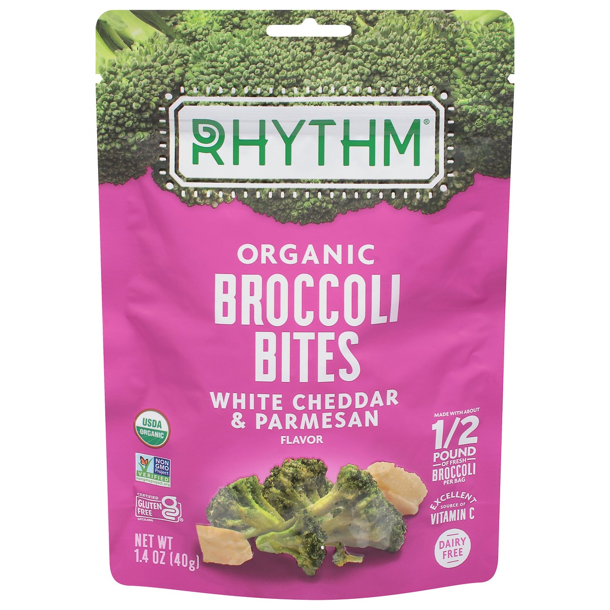 Made with about 1/2 pound of fresh broccoli per bag. Snacks full of life. Ready to take brocc on the wild side? Our Organic White Cheddar & Parmesan Broccoli Bites are bursting with all the sharp flav…