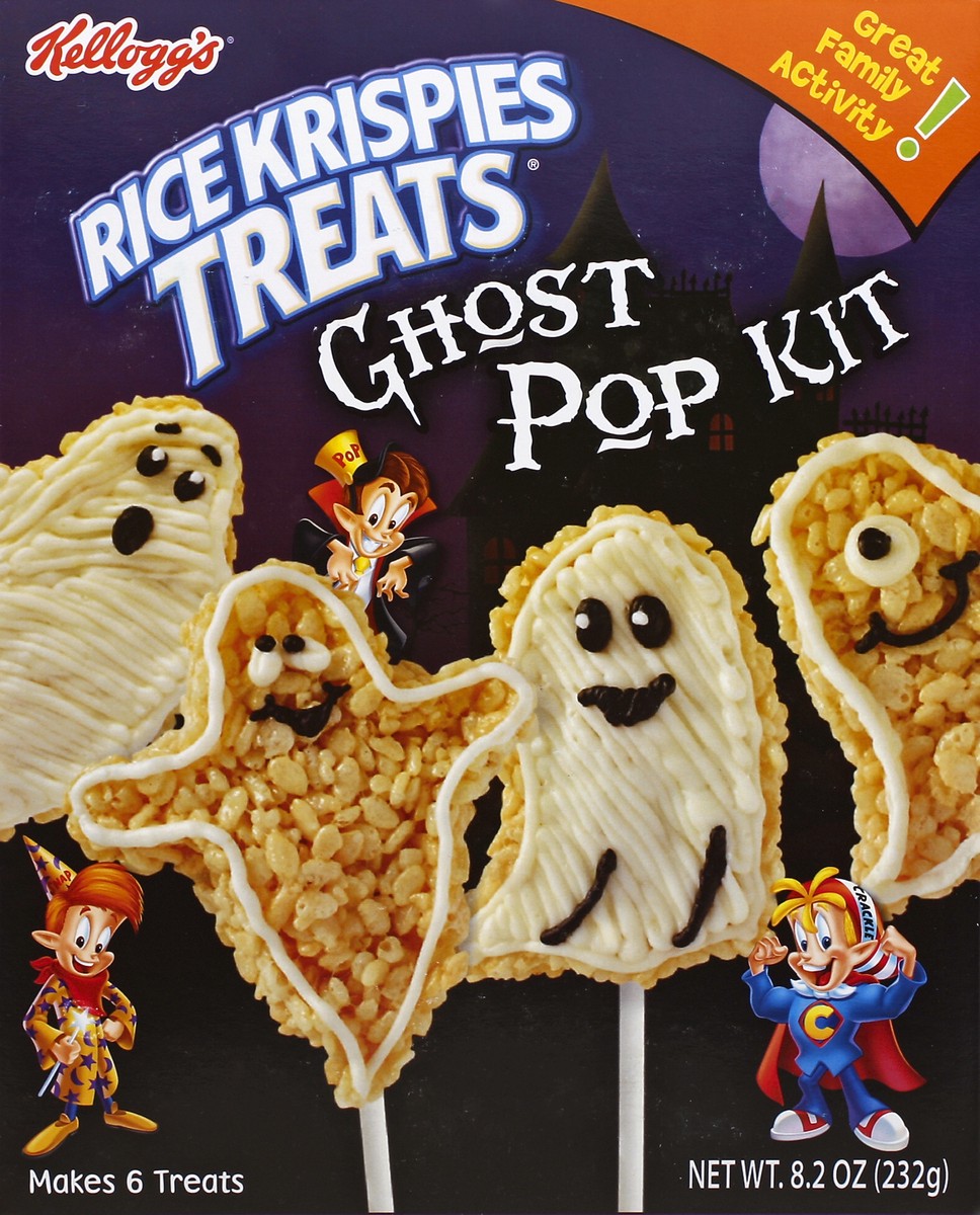 Makes 6 treats. Kit includes: Mini marshmallows; rice Krispies cereal; vanilla frosting mix; icing pen; piping bag; treat sticks; ghost mold. Great family activity! This Halloween spend time with the …