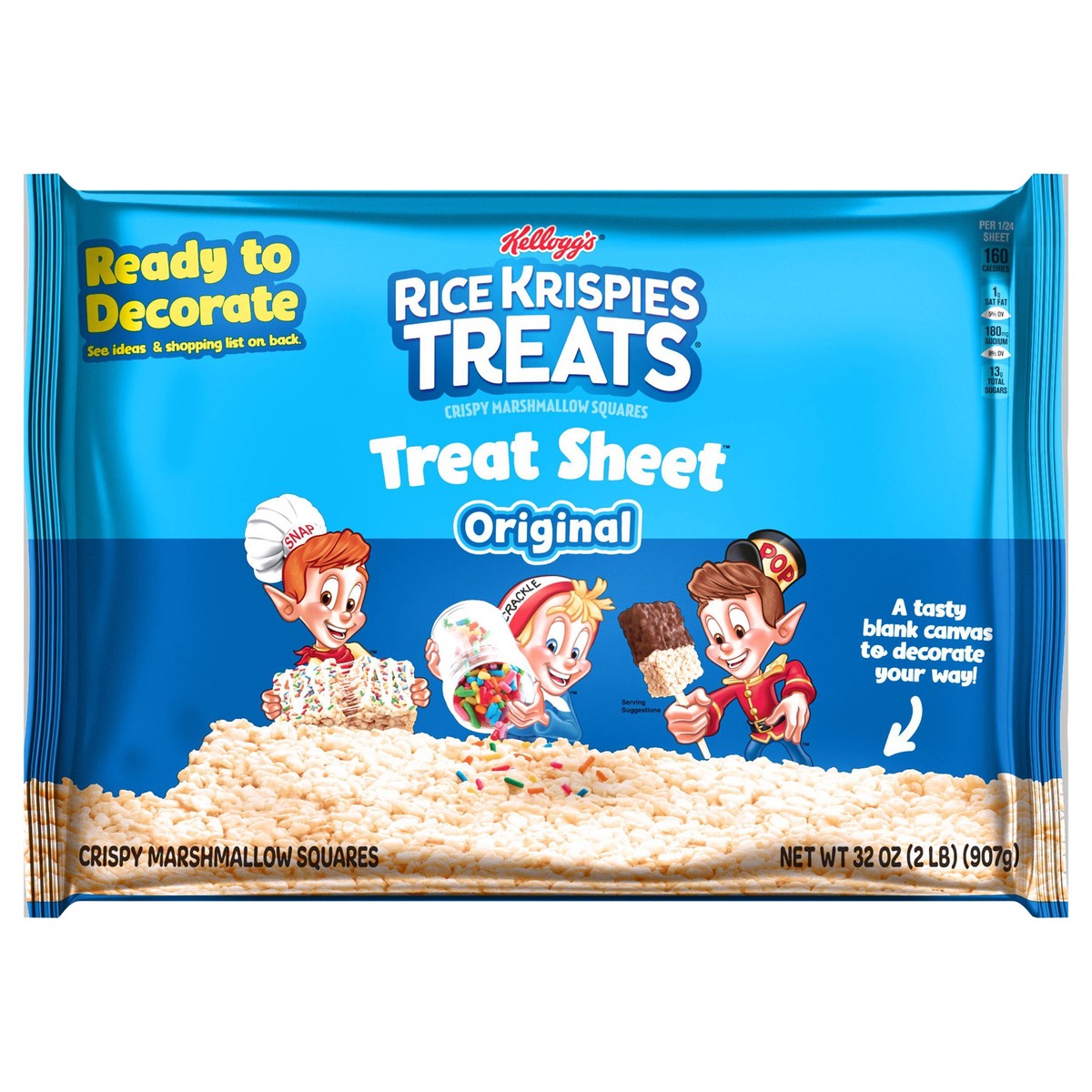 Make snack time a little sweeter and a lot more fun with the irresistible taste of Kellogg's Rice Krispies Treats crispy marshmallow squares in a party-sized sheet. Ready to decorate and serve, enjoy …