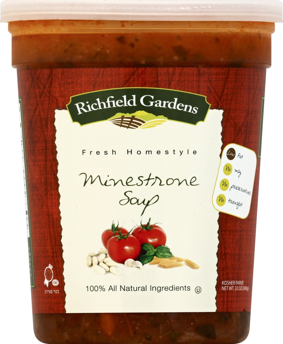 Fresh homestyle. 100% all natural ingredients. Low fat. No MSG. No preservatives. No trans fat. Questions & Comments: www.Richfieldgardens.net.