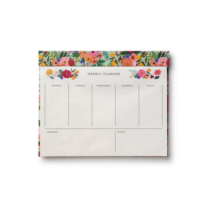 Organize your week with this at-a-glance desktop notepad by Florida-based stationery brand Rifle Paper Co., bordered in bright flowers based on hand-painted artwork by co-founder and CEO Anna Bond. Co…