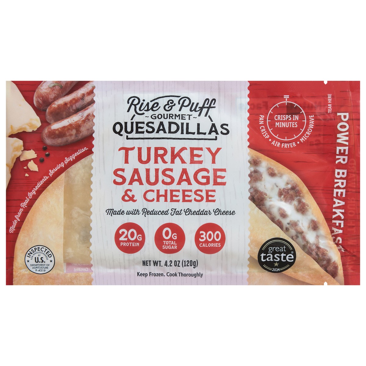 Flour Tortilla: Unbleached Wheat Flour, Water, Avocado Oil, Sea Salt, Filling: Turkey Sausage (Turkey, Spices, Salt, Sugar, Yeast Extract), Reduced Fat Cheddar Cheese (Pasteurized Low Fat Milk, Cheeseā¦