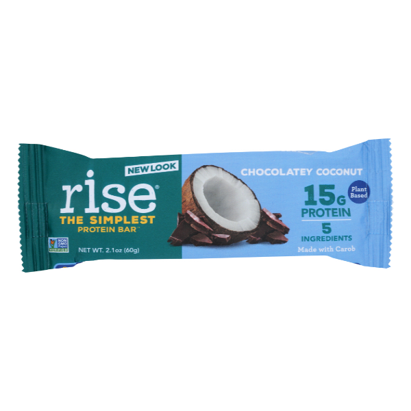 New look. Non GMO Project verified. nongmoproject.org. 15 g protein. 5 ingredients. Plant based. No gluten, soy, peanuts, dairy. Made with carob. Twitter. Facebook. Instagram. Risebar.com. Made with r…
