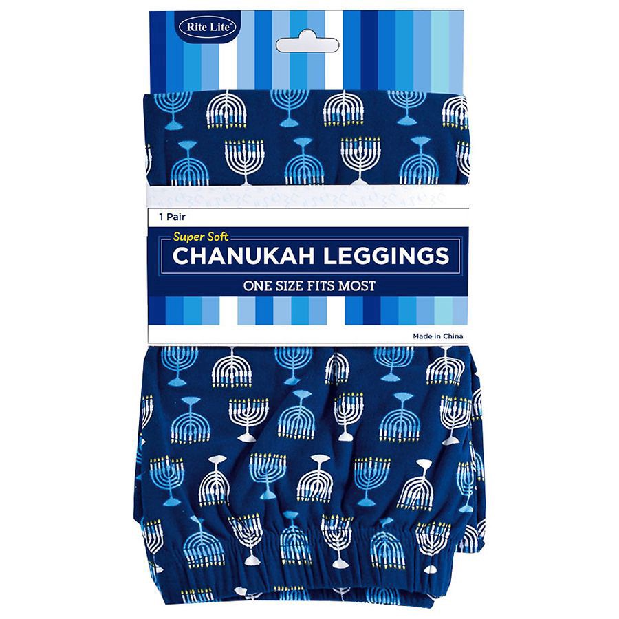 Add a stylish touch to your Hanukkah outfit with this Menorah Leggings from Rite Lite. These ultrasoft and somfortable blue leggings feature an allover miniature menorah motif. Fun to wear on Hanukkah…