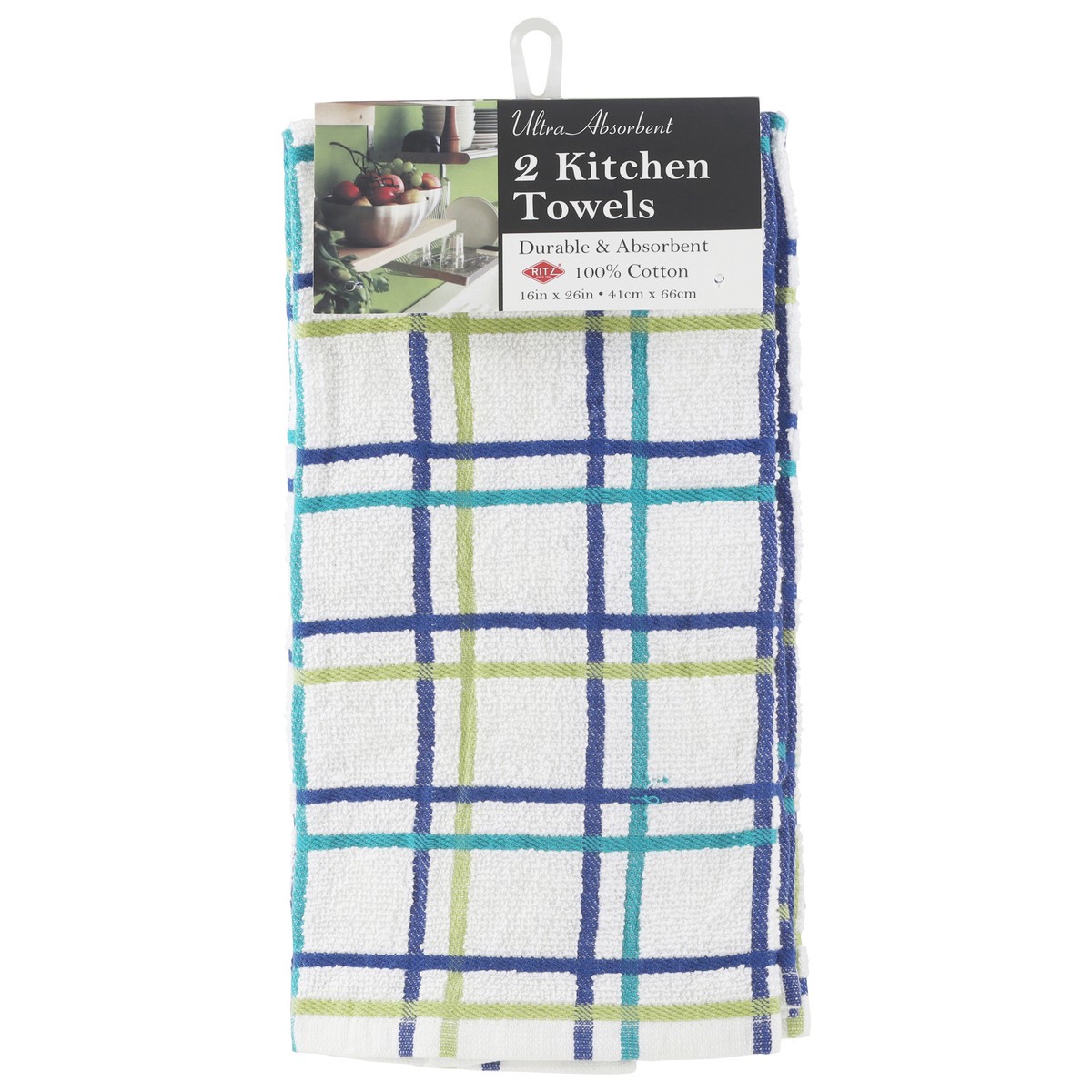 slide 1 of 1, Ritz Teal Multi Check Ultra Absorbent Kitchen Towels 2 Each, 2 ct