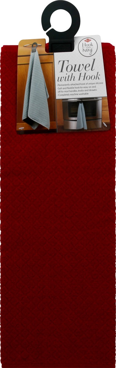 Permanently attached hook of unique silicone. Soft and flexible hook for easy on and off for most handles, knobs and drawers. Completely machine washable. Our Ritz Hook & Hang towels combine practical…