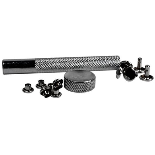 Find the Rivets & Setter Kit by Make Market at Michaels. Set rivets in leather or canvas quickly and easily with this kit. Rivets are one way you can attach two pieces of leather together. Nickel sett…