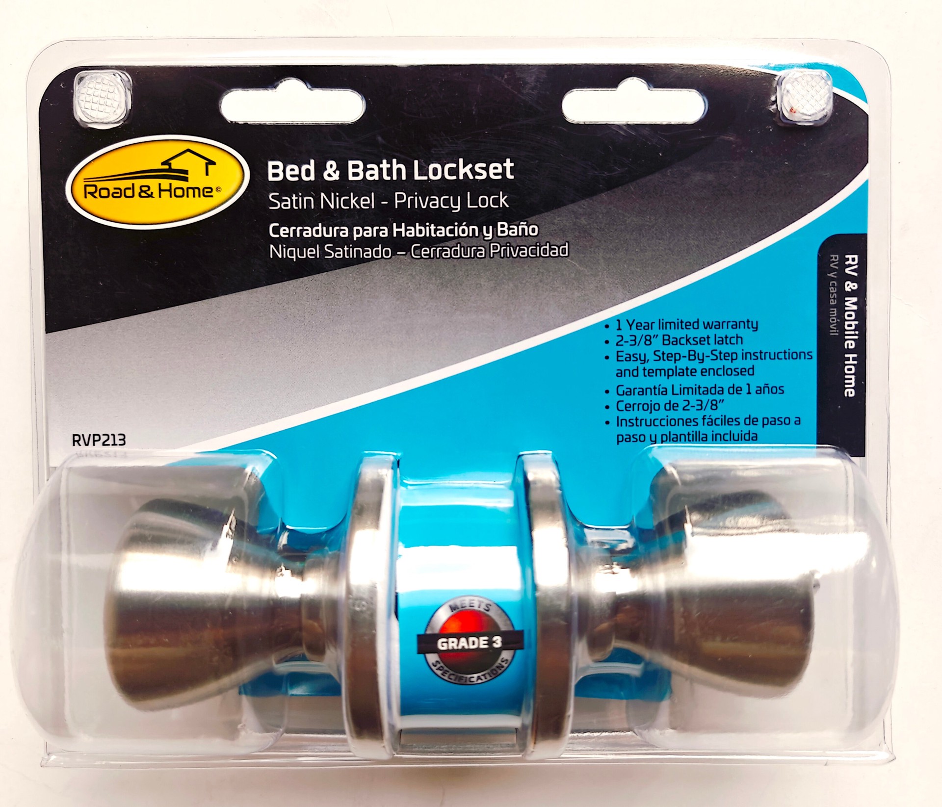 Road & Home Nickel Interior or Bed/Bath Privacy Door Knob