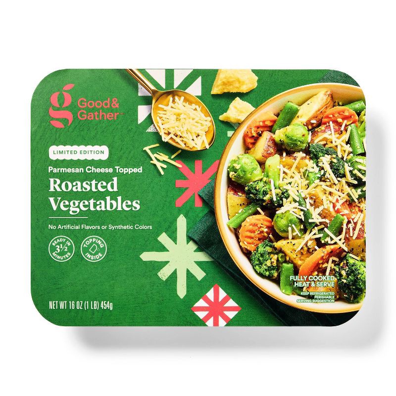 These Roasted Vegetables with Parmesan Cheese from Good & Gather™ give you a quick, easy and delicious side for a variety of meals. Mixed roasted vegetables are topped with Parmesan cheese for a winni…