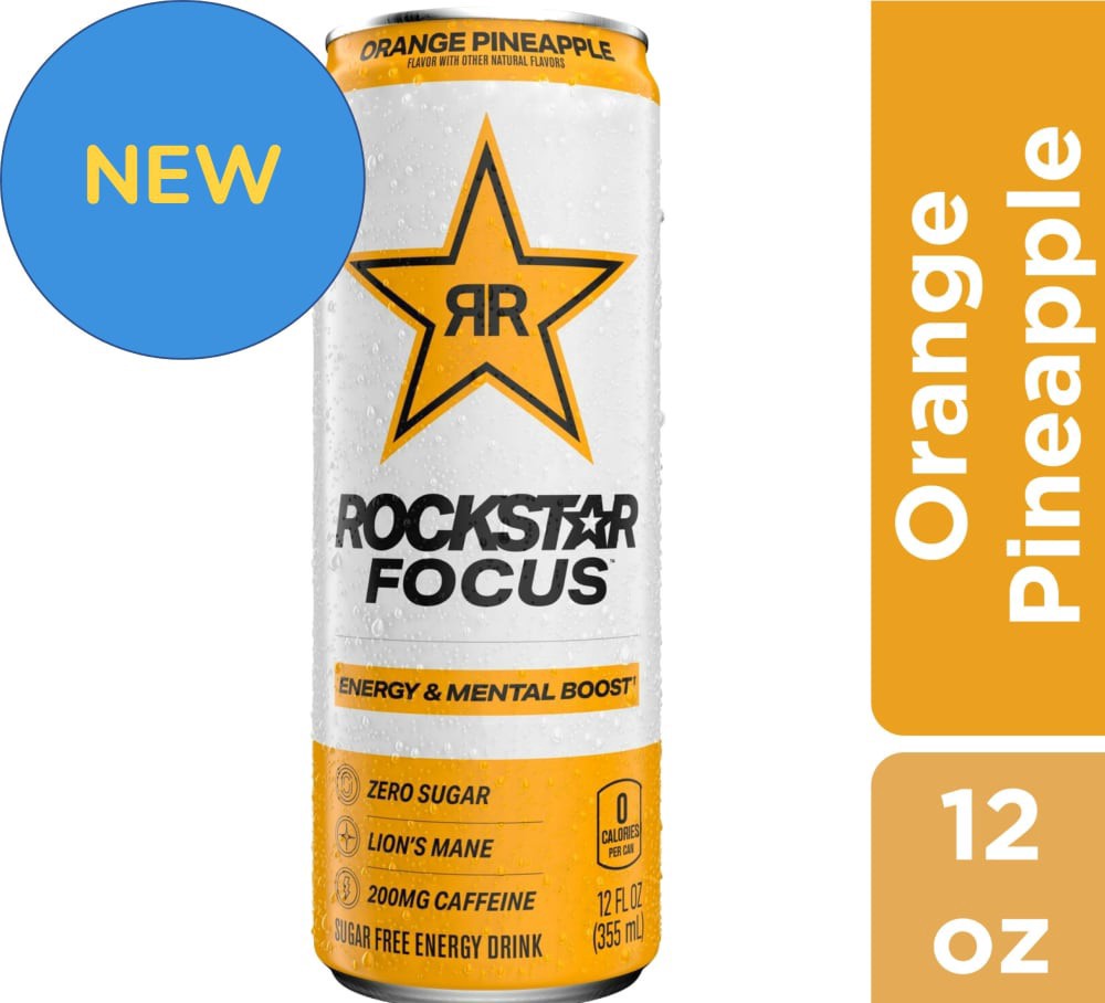 Rockstar Focus Energy Drink is made with lion's mane for energy & mental boost. Rockstar Focus Energy Drink has zero calories and zero sugar, all flavor, no guilt. With 200mg Caffeine per can, Rocksta…