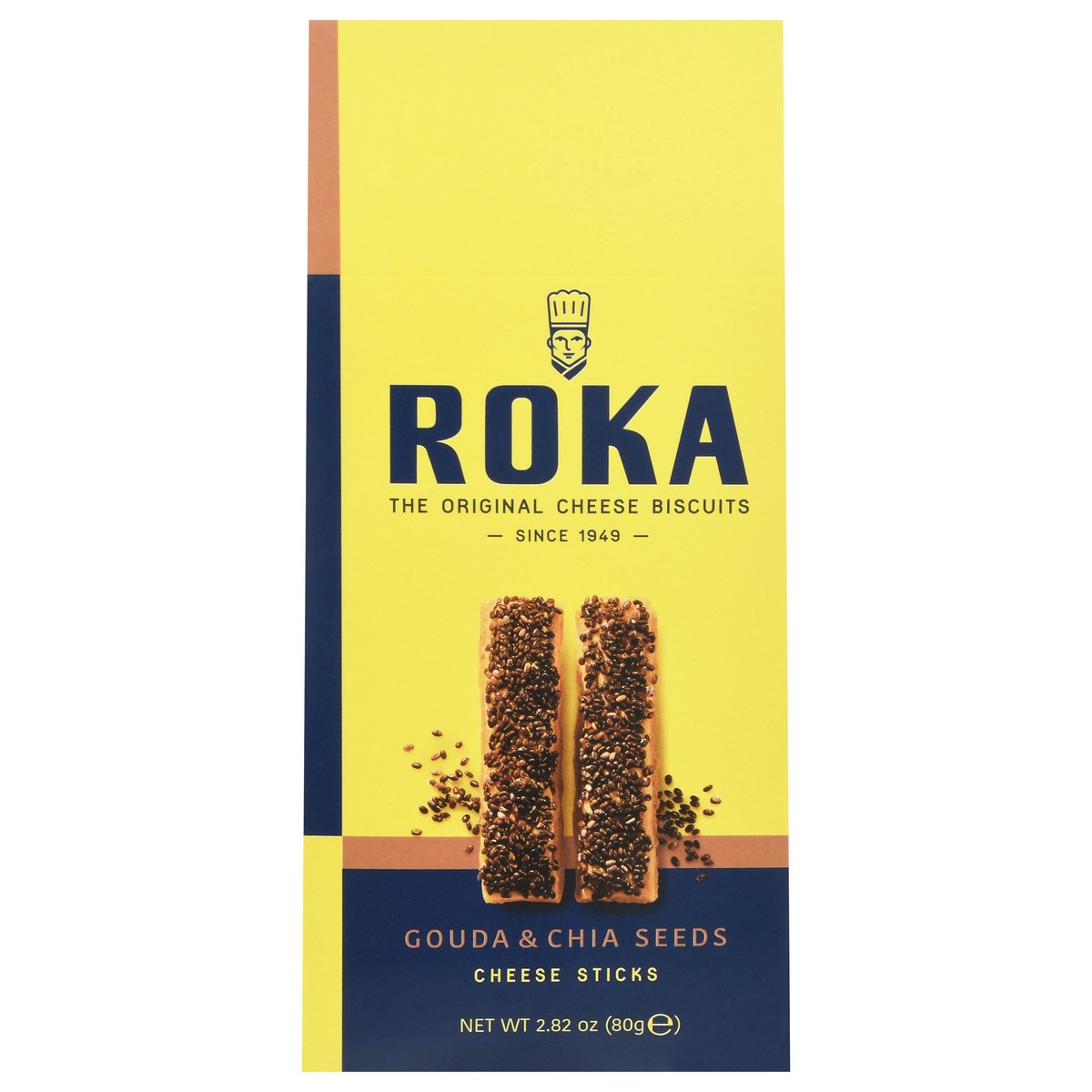 Gouda & Chia Seeds Cheese Sticks Ingredients: Wheat Flour, Gouda Cheese [Pasteurised Milk, Salt, Starter Culture, Calcium Chloride, Rennet, Sodium Nitrate, Colour (Carotene)], Vegetable Fats [Palm, Co…