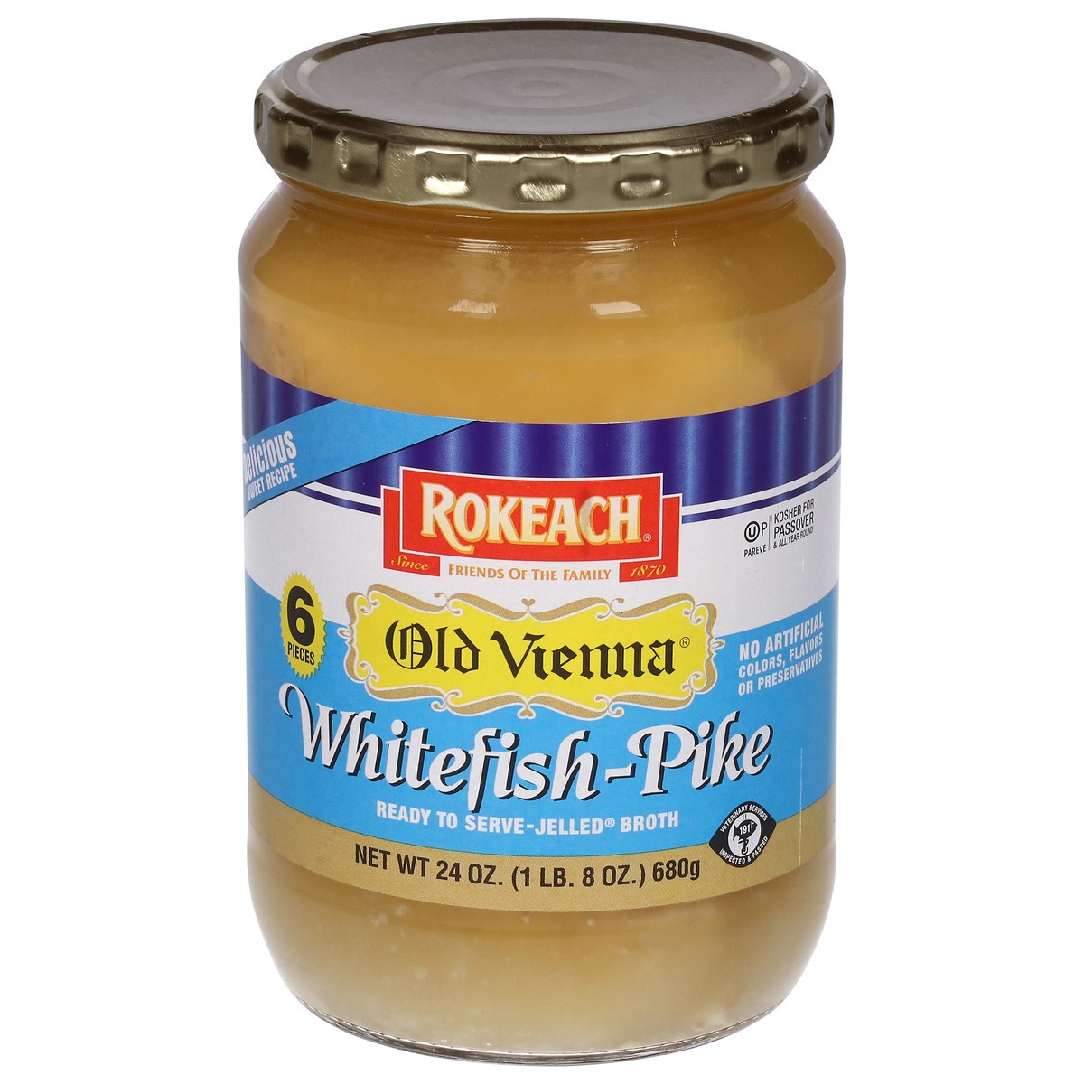 Water, Cisco, Whitefish, Pike, Onions, Matzo Meal (Passover Wheat Flour and Water), Potatoes, Sugar, Potato Starch, Salt, Powdered Egg Whites, Monosodium Glutamate, Potato Flakes, Pepper, Carrageenan.