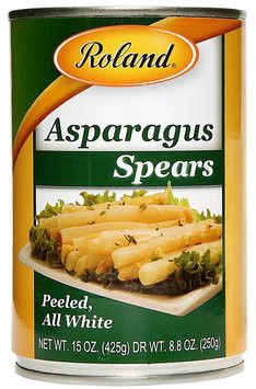Dr. Wt. 10 oz (250 g). Specialty foods. Roland White Asparagus lend an elegant & tasty touch to any meal. Serve in any of the following ways: 1. Use as a garnish for meat, poultry, fish or eggs. 2. He…