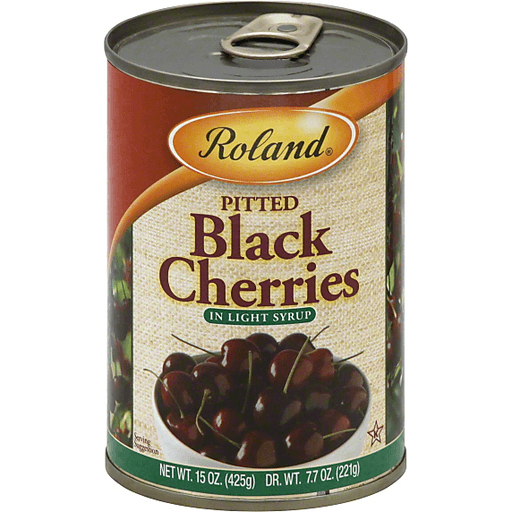 slide 1 of 1, Roland Black Cherries, Pitted In Light Syrup, 15 oz