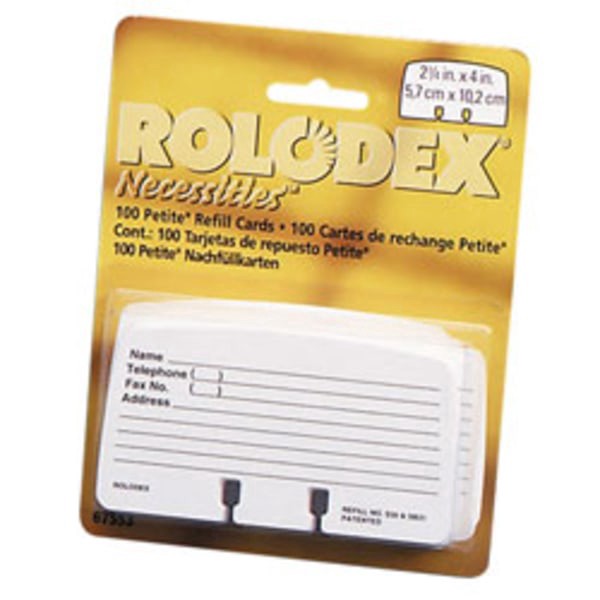Rolodex Card File Refills, Ruled, 2 1/4'' X 4'', White, Pack Of 100