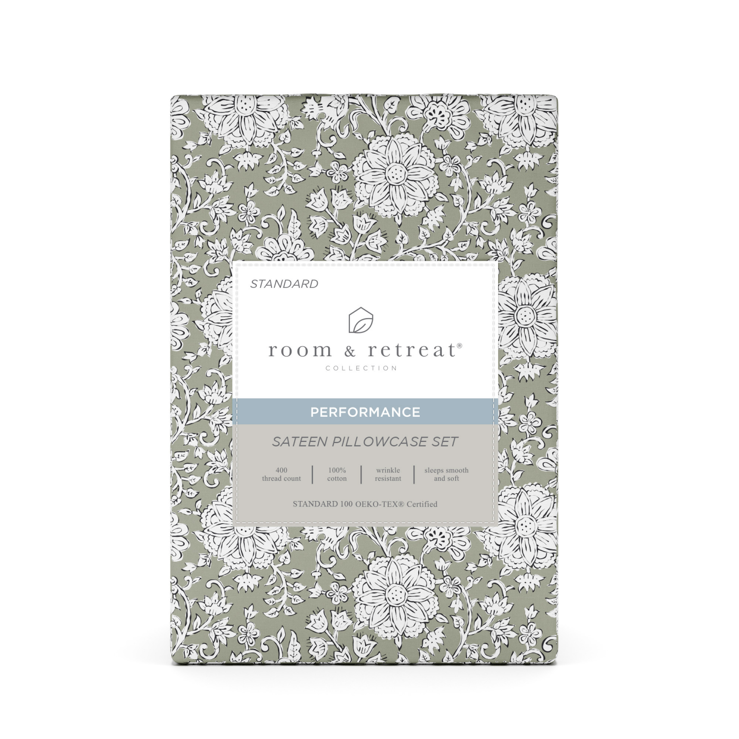 Room & Retreat 400 Thread Counts Pillowcase, Standard, Set of 2, Green Block Floral