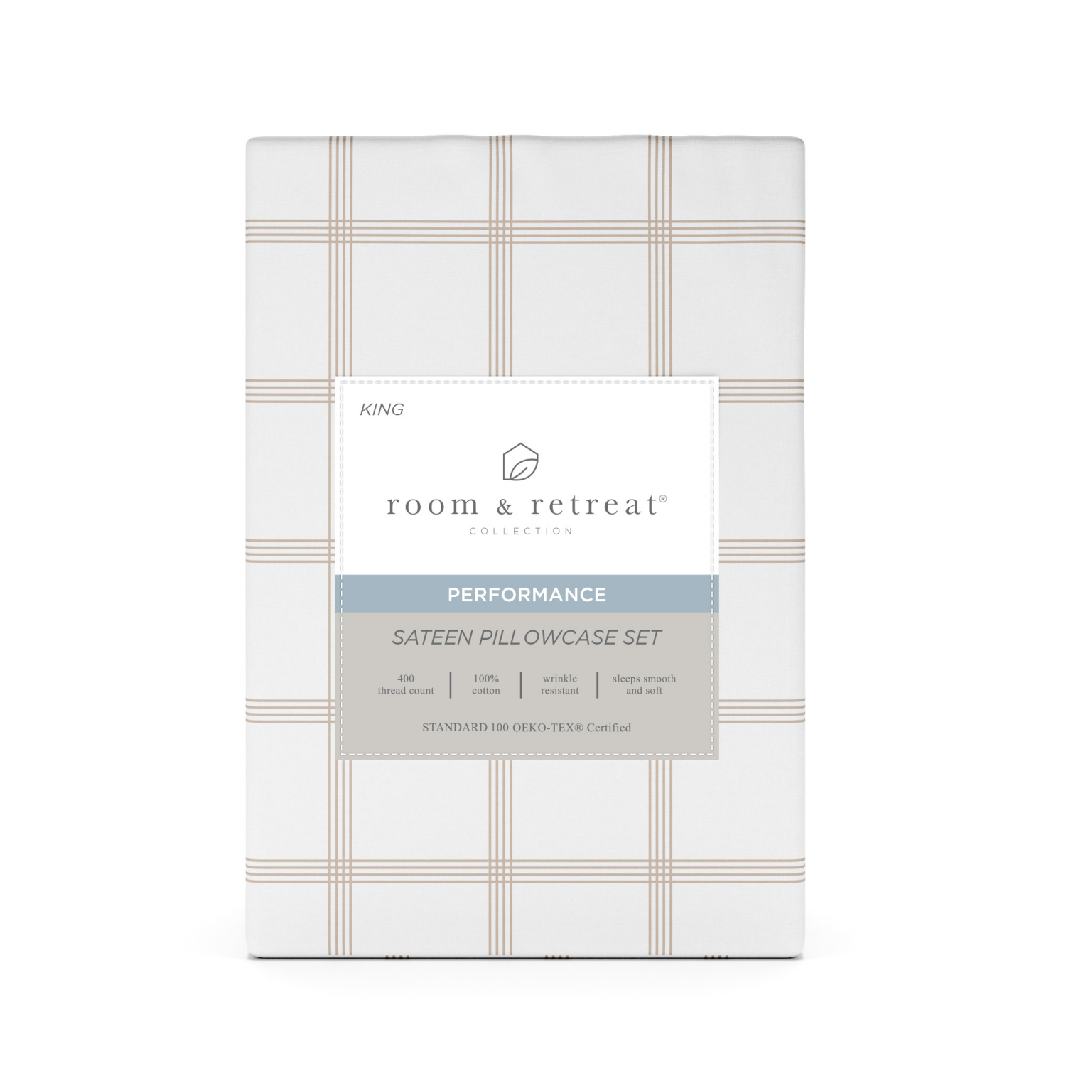 Room & Retreat 400 Thread Counts Printed Pillowcase, King, Set of 2, Tan Plaid